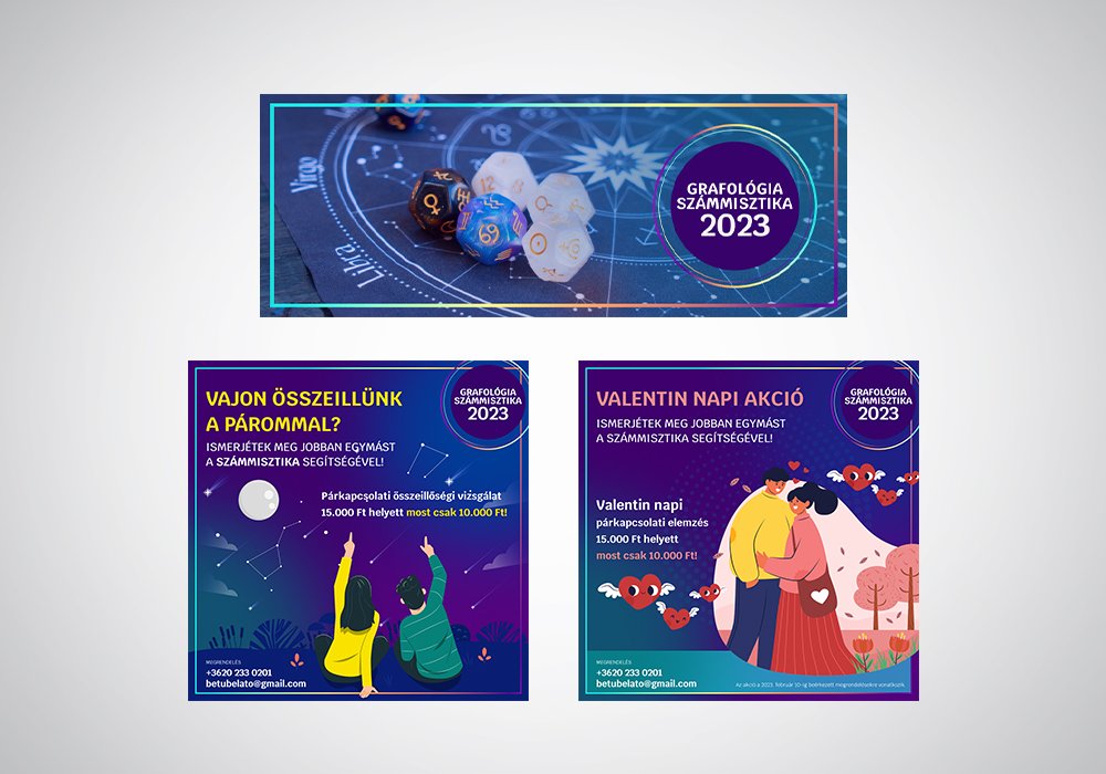 Megrendelés során egyeztetjük az igényeket, hogy milyen promócióra, ünnepre vagy eseményre készüljenek a kreatívok. Az ár grafikai tervezésre vonatkozik, így kérjük a szöveges tartalommal te készülj!
